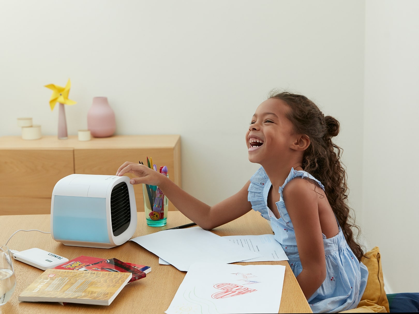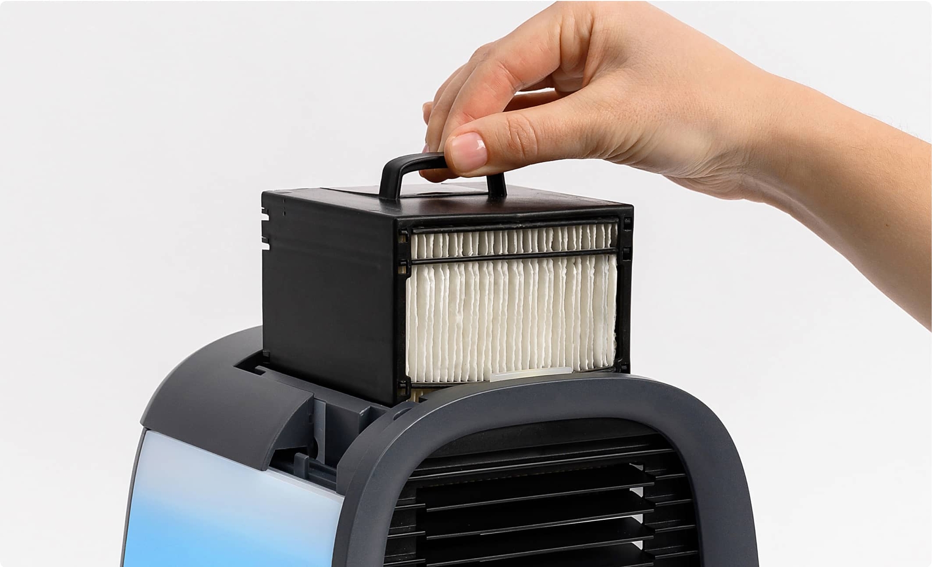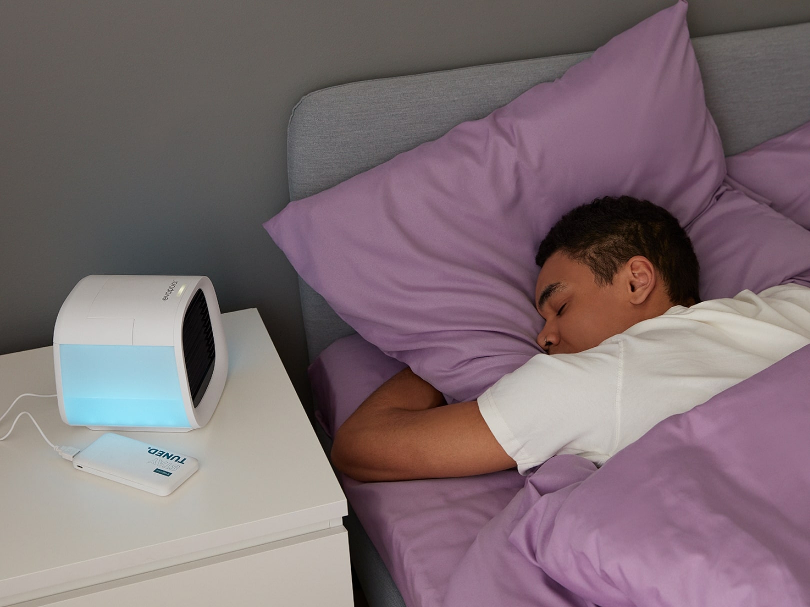 evaCHILL simulates a natural breeze that gently cools your body with humid and fresh air.